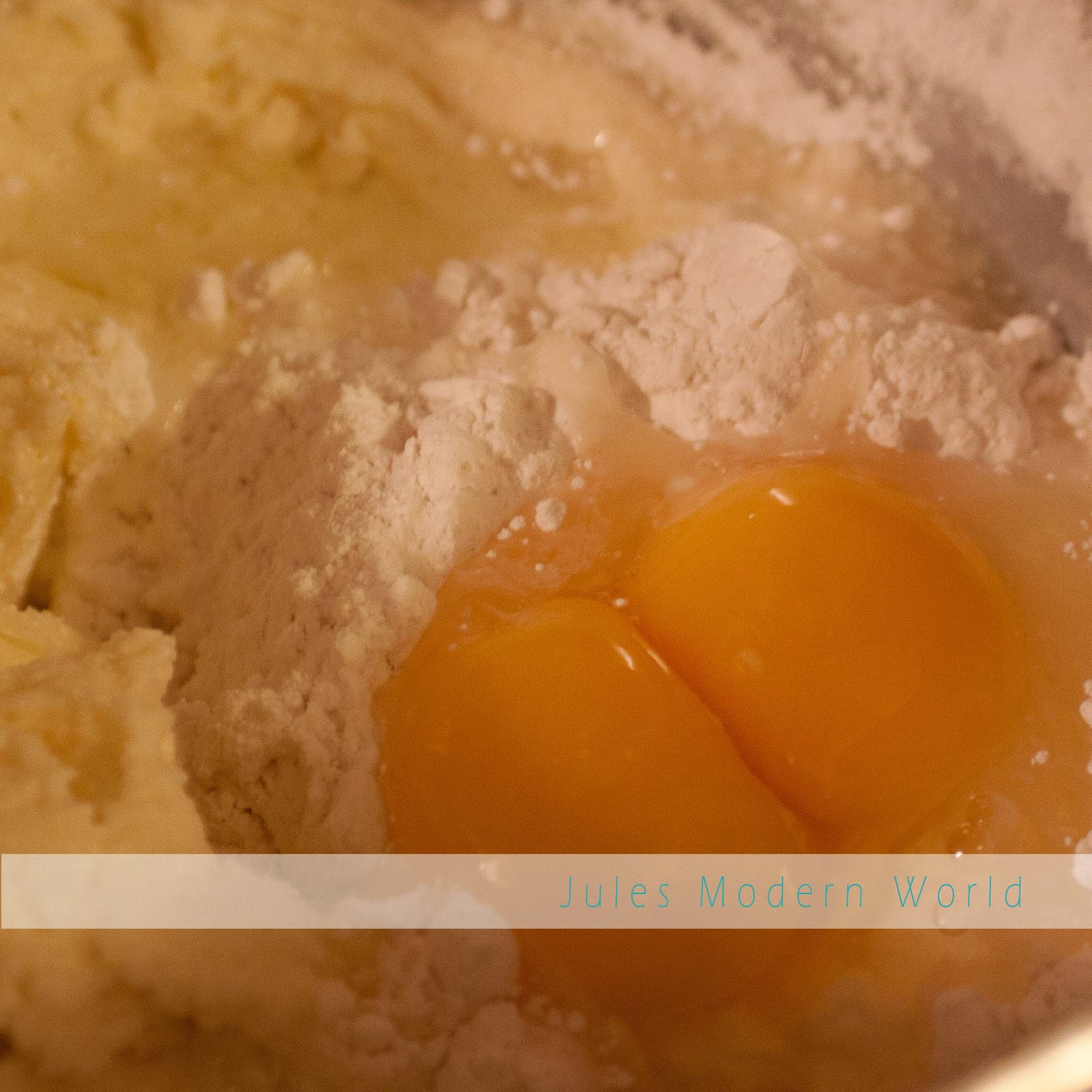 So after getting the 2 cups of oatmeal measured out I just dump it into the glass pan with the walnuts and cranberries. As you can see I am pretty methodical about dumping the ingredients into the pan. I just love the mix of colors as the ingredients are layered into the pan.